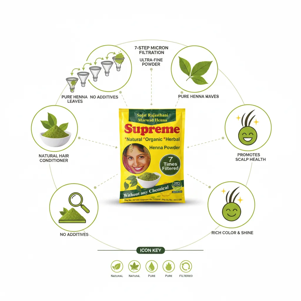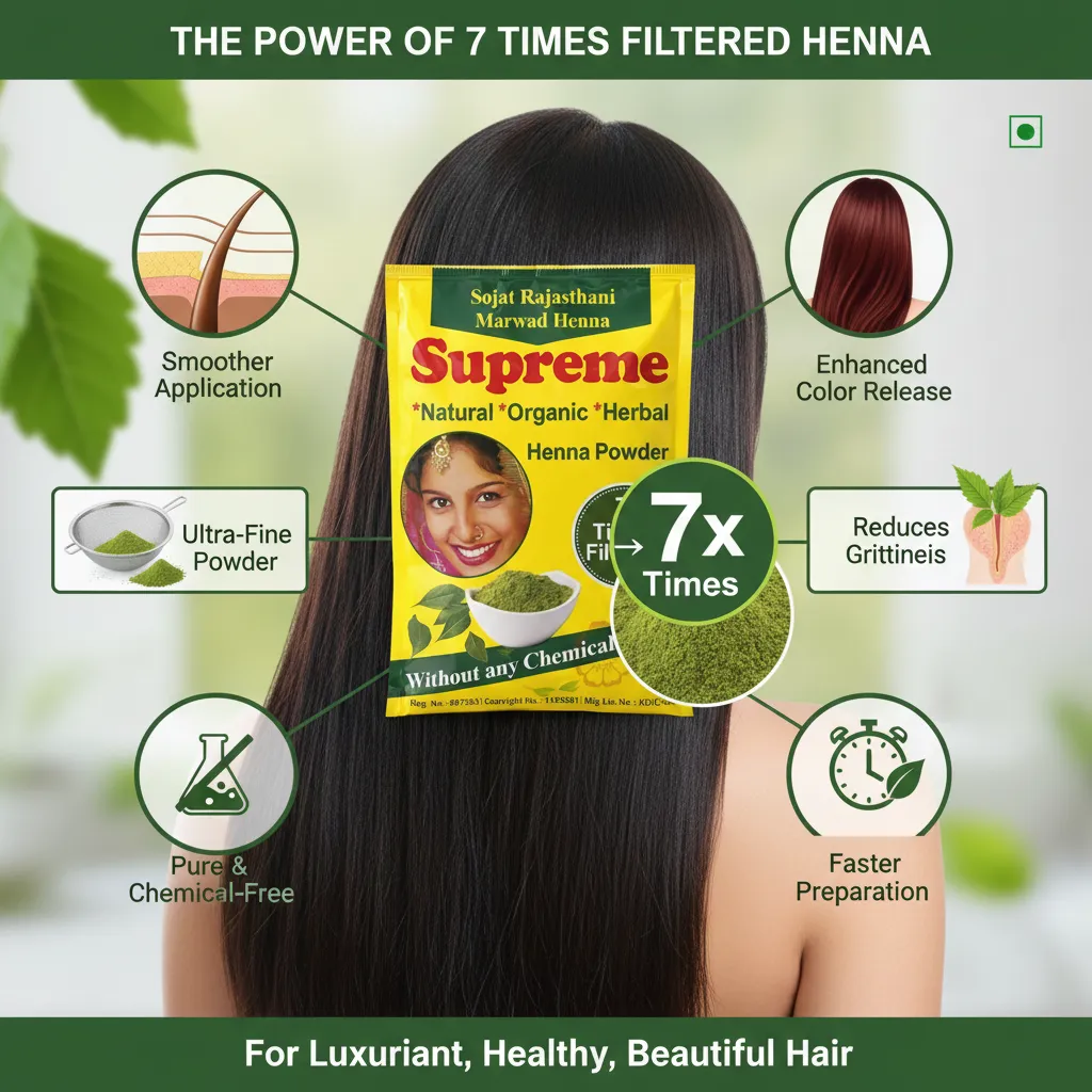 Explore our wide range of 7 herbal mehndi color variants designed to give your hair a natural and vibrant look. From bold reds like Cherry Red, Wine Red, and Apple Red to subtle tones like Natural Brown and Copper Brown, and classic Natural Black, we have the perfect shade for every style.