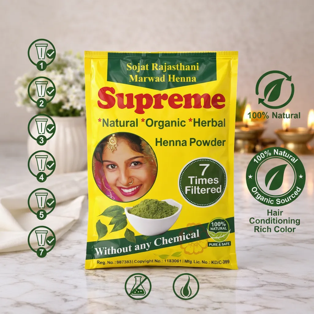 All our mehndi powders are enriched with Amla & Shikakai, helping to nourish your hair while providing long-lasting color. These herbal formulas are chemical-free, making them safe for regular use and suitable for all hair types.