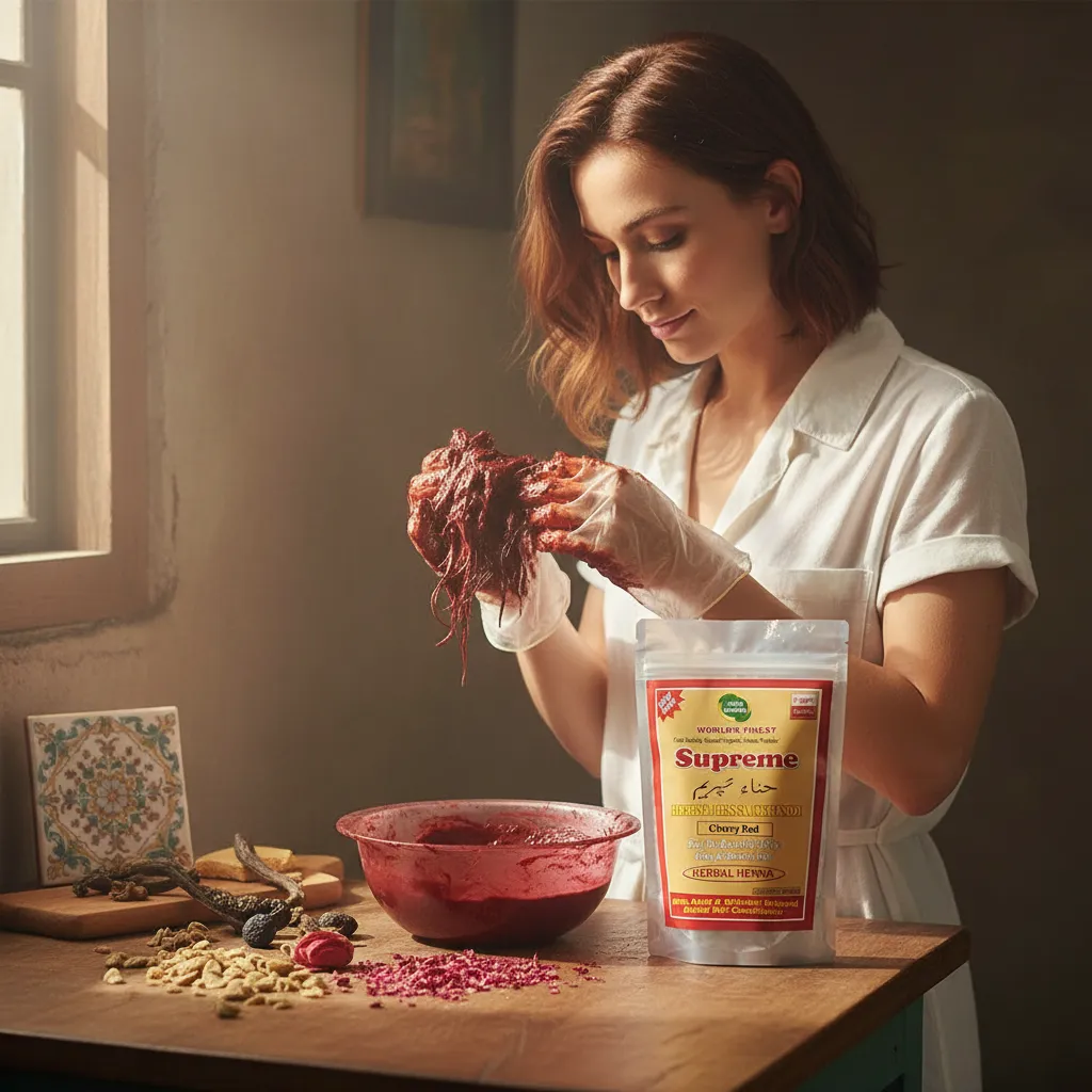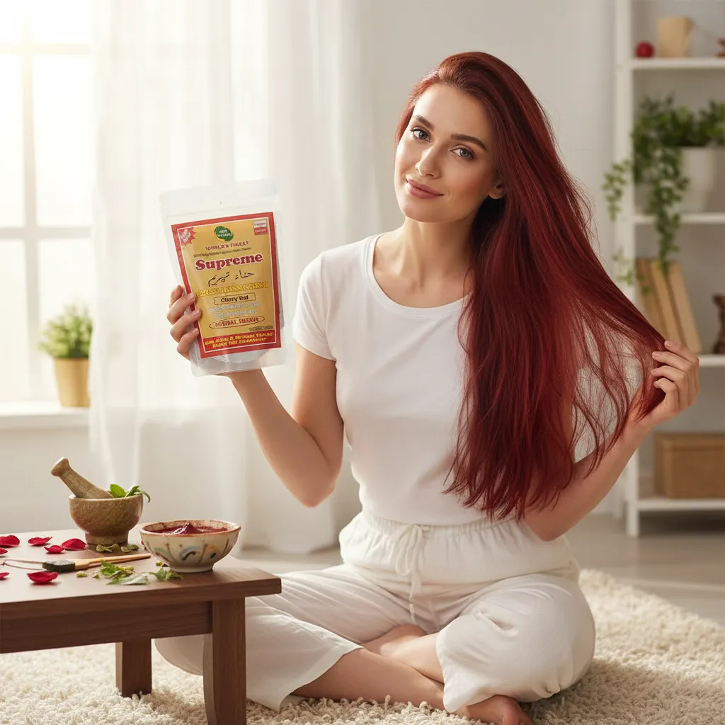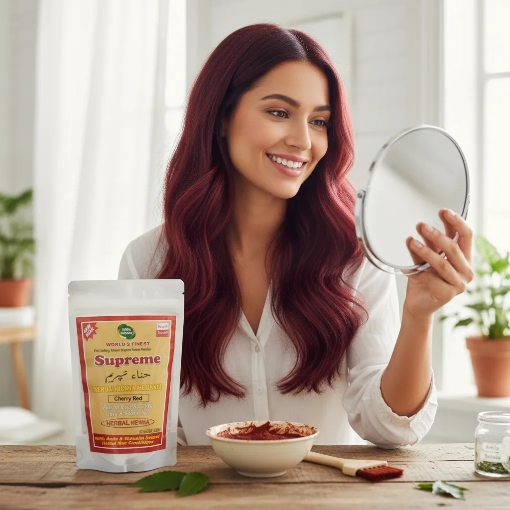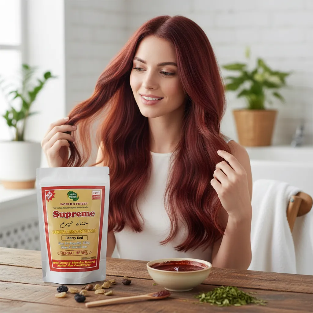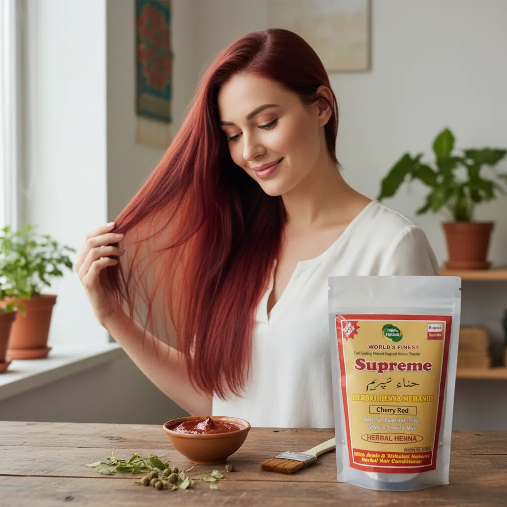 Supreme Herbal Henna Mehndi Powder (Cherry Red) ek herbal hair color solution hai jo aapke baalon ko ek stylish aur attractive cherry red shade deta hai. Yeh un logon ke liye perfect hai jo chemical hair dyes ke bina ek unique aur vibrant hair color chahte hain.