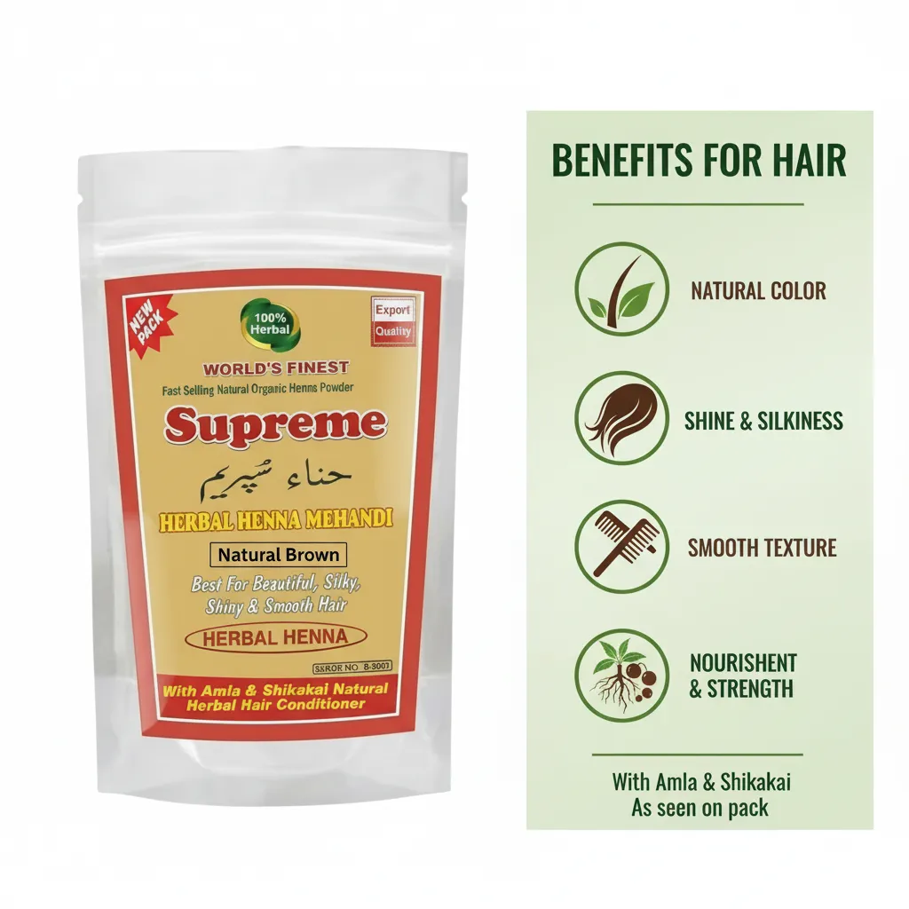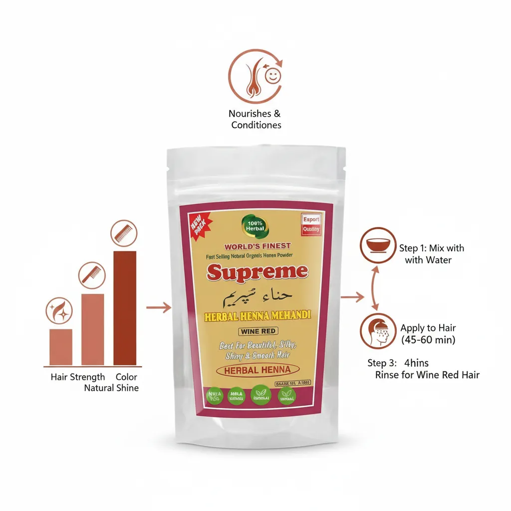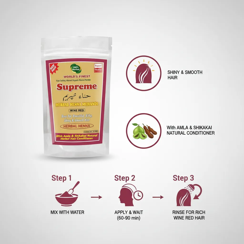 Supreme Herbal Henna Mehndi Powder – Wine Red Color | With Amla & Shikakai | Natural Hair Color & Conditioner